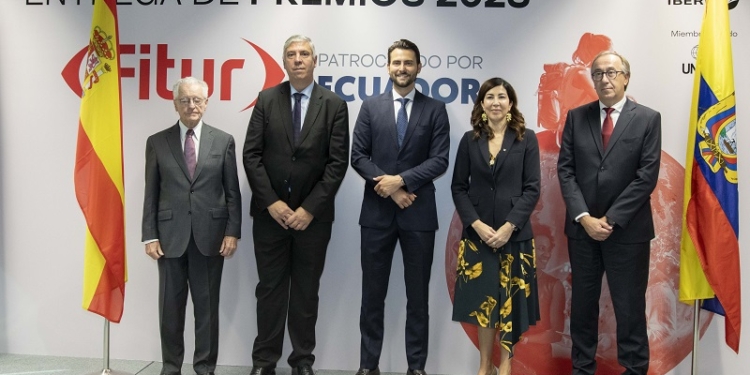 El acto de entrega, patrocinado por Ecuador, País Socio FITUR 2024, ha estado presidido por Rosana Morillo, Secretaria de Estado de Turismo, y ha contado con la presencia, entre otras autoridades, del Ministro de Turismo de Ecuador, Niels Olsen; el Embajador de la República de Ecuador en España, Andrés Vallejo Arcos, el Presidente del Comité Ejecutivo de IFEMA Madrid, Jose Vicente de los Mozos, el Subsecretario de Promoción del Ministerio de Turismo de Ecuador, Diego Fernando Andrade Murtinho, y el Presidente del Comité Organizador de FITUR y presidente de Iberia, Fernando Candela Pérez.