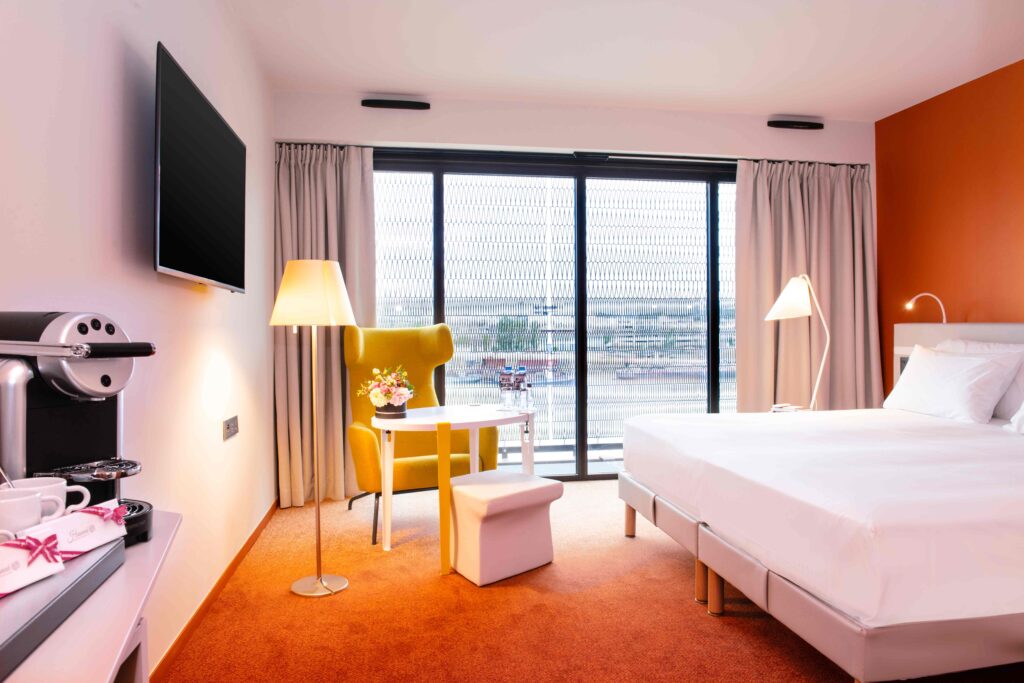 El hotel, de 125 habitaciones, se encuentra en el barrio de Bassins à Flots y ofrece vistas al río Garona