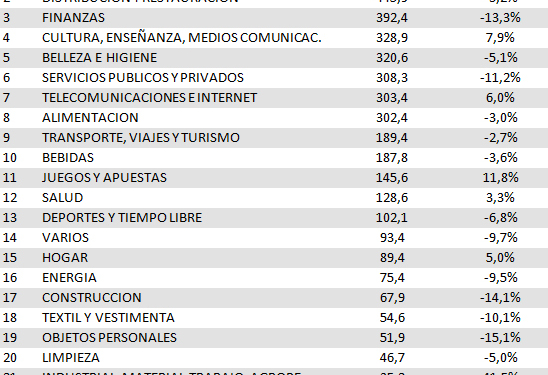 Lideran la tabla automoción (564,1 millones), distribución y restauración (445,9 millones) y finanzas (392,4 millones). La suma de los diez primeros sectores supone el 78,5% del total de la inversión publicitaria.