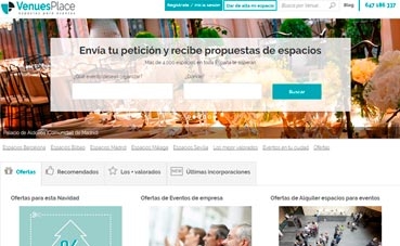 VenuesPlace permite a los usuarios buscar, comparar y elegir entre su extenso catálogo de espacios. Aquí pueden ver sus características, realizar comparativas de las instalaciones, recursos técnicos y de presupuesto, de tal forma que pueden valorar los espacios y solicitar cotización. Además, la plataforma dispone de un servicio de asesoramiento gratuito, VenuesFinder, formado por un equipo de profesionales buscadores de espacios que, con una simple llamada, se encargan de localizar para el cliente aquellos espacios que mejor cumplan con las características solicitadas.