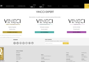 El portal está dividido en tres áreas: Vincci Expert Meetings & Events, para los organizadores de reuniones y eventos; Vincci Expert Corporate, para empresas y travel managers; y Vincci Expert Agents, para agentes de viajes. Todos ellos se han diseñado con las especificaciones para cada tipo de cliente y presentan todas las facilidades para culminar una reserva online.