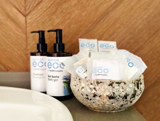 También se ha instalado en los hoteles de la cadena dispensadores de gel y champú, reemplazando el formato individual, que genera mayor residuo contaminante.