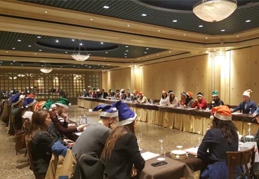 Tras esta visita llegó el turno de las actividades de team building y del fotomatón de Atmósfera Eventos. En primer lugar, se probó puntería con una competición de dardos por parejas y se terminó con el ‘casino gourmet’ de Zaragoza Servicios. Para esta última actividad, los cinco grupos pasaron por mesas de cata de jamón, vino, queso, chocolate y refrescos de cola en los que estaban presentes todos los sentidos con preguntas como «¿sabrías decir de qué animal proviene el queso que acabas de catar?» o, «¿qué porcentaje de cacao tiene este chocolate?». Después, con las fichas obtenidas se rifaron varios lotes de productos gastronómicos.