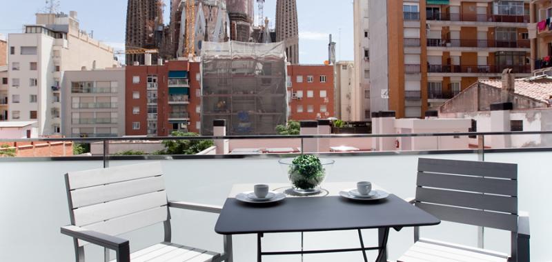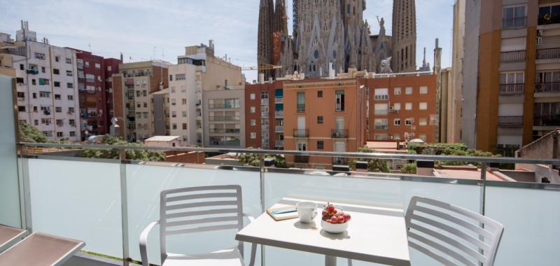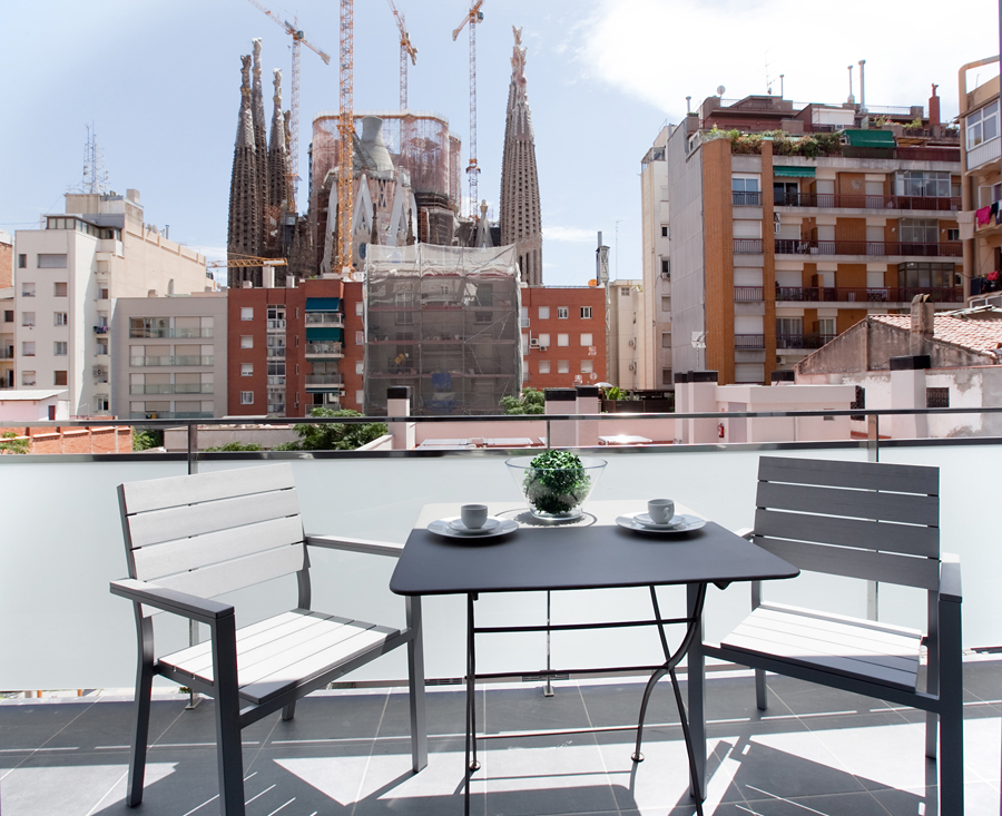 Los apartamentos se encuentran situados en una de las mejores zonas de Barcelona a escasos metros de la Basílica de la Sagrada Familia, lo que permite, a su vez, disfrutar la experiencia de contemplar y admirar, desde sus habitaciones, balcón, terraza o salón comedor, el monumento más famoso de la ciudad condal, obra maestra de Gaudí, joya arquitectónica mundial y el máximo exponente de la arquitectura modernista catalana.