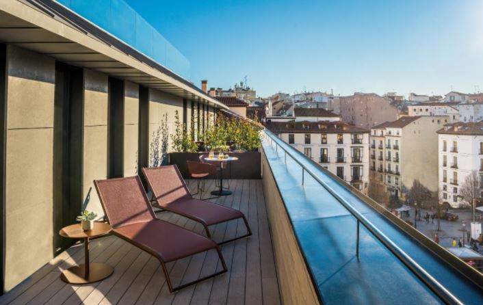 El patio interior cuenta con vegetación y mucha luz. La propuesta se completa con una gran azotea, OD Sky Bar, con piscina exterior, solárium y bar con vistas sobre Madrid. El hecho además de estar muy próximo a lugares de interés turístico como el Palacio Real, la Plaza Mayor, la calle Gran Vía o la Puerta del Sol serán sin duda otro de los grandes atractivos de este nuevo hotel.