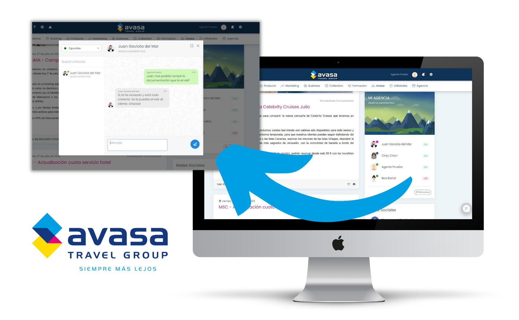 Desde hace unos días, ya está operativa la nueva herramienta que AVASA Travel Group ha lanzado en exclusiva para sus agencias asociadas. Se trata del 'chat de AVASA', un sistema de mensajería instantánea que tiene como principal objetivo fomentar la comunicación de AVASA con sus agencias y entre las diferentes oficinas de éstas.