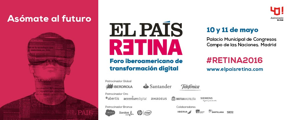 Eventisimo ha sido la agencia elegida para la organización integral del Foro Iberoamericano de Transformación Digital, El País Retina, que se está celebrando estos días en el Palacio Municipal de Congresos de Madrid. Un foro, organizado por El País en el año de su 40 aniversario, en el que profesionales, emprendedores, inversores, directivos de empresas y responsables públicos están compartiendo las últimas tendencias ligadas a las nuevas tecnologías y definiendo el futuro de los negocios digitales en Iberoamérica.