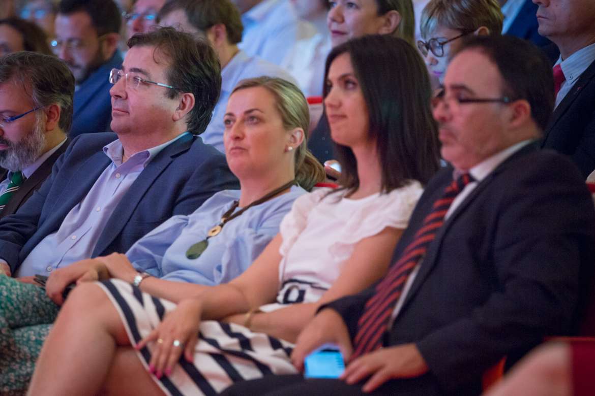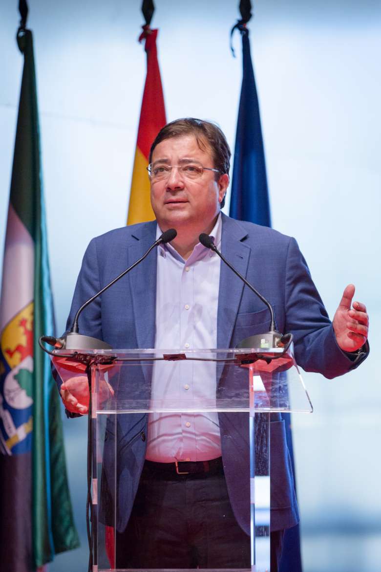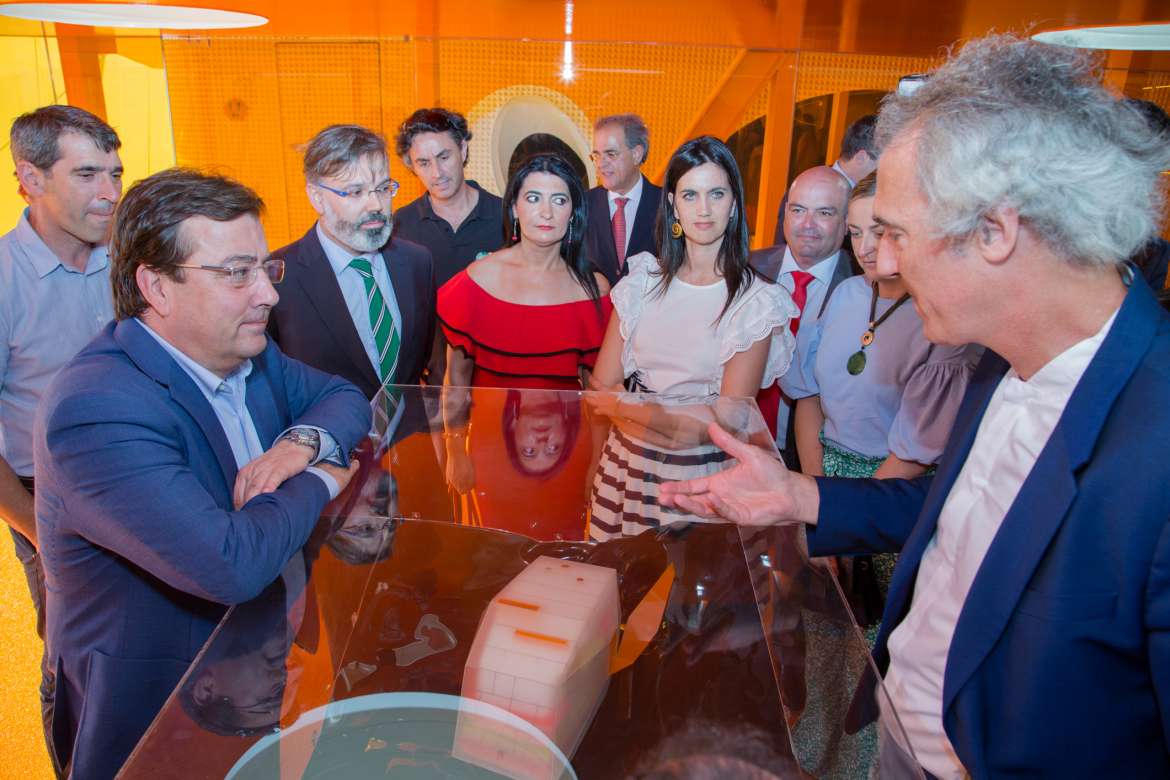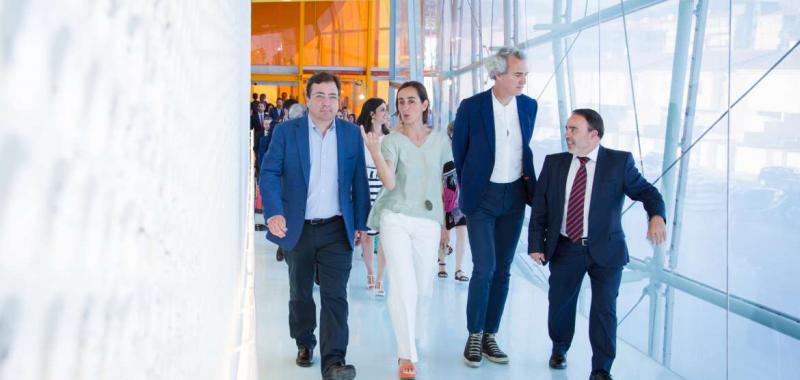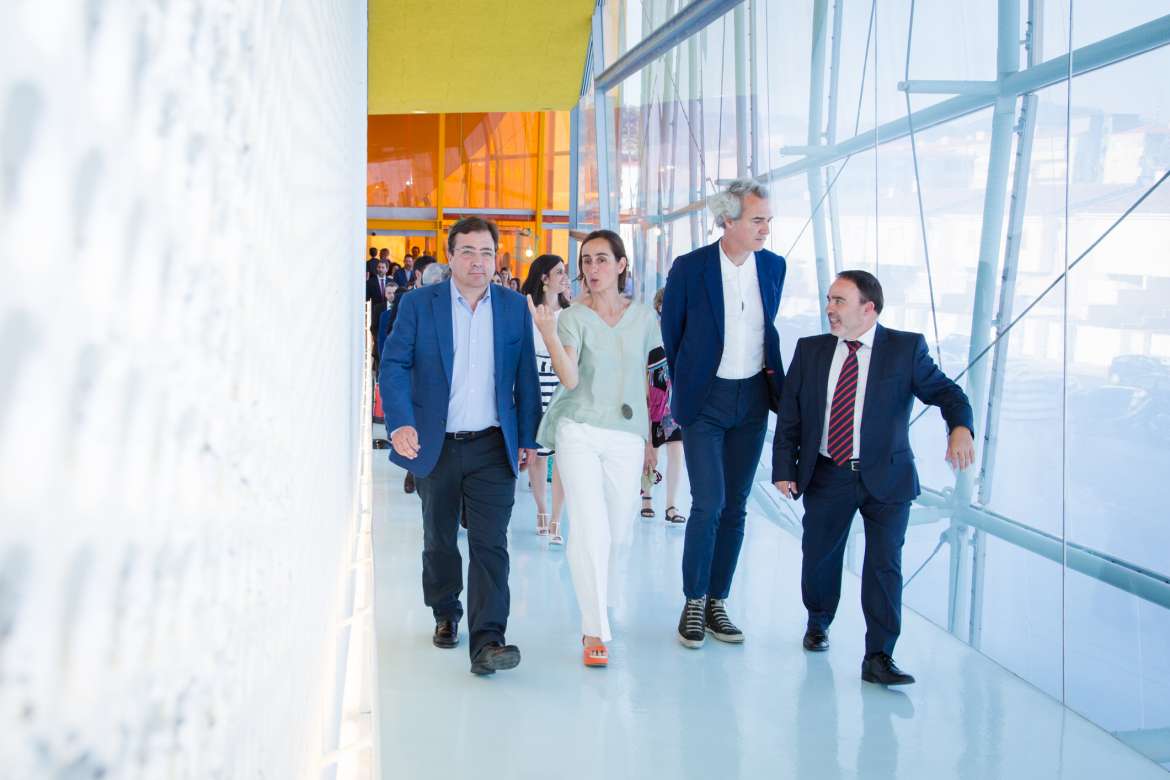 A la inauguración del Palacio de Congresos y Exposiciones de Plasencia, edificio diseñado por los arquitectos José Selgas y Lucía Cano, han asistido también, entre otras autoridades, la presidenta de la Asamblea de Extremadura, Blanca Martín, y el alcalde de Plasencia, Fernando Pizarro.