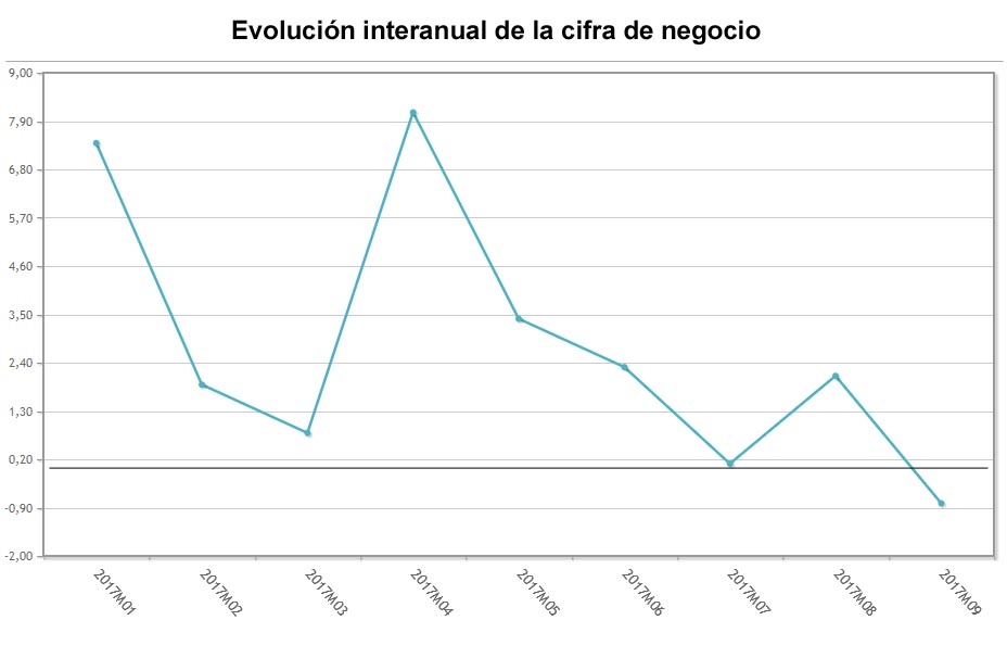 A pesar del mal comportamiento observado en septiembre, el volumen de negocio de estas empresas está en el acumulado del año por encima de los niveles alcanzados en 2016. En concreto, en los nueve primeros meses muestra un incremento interanual del 2,3%.