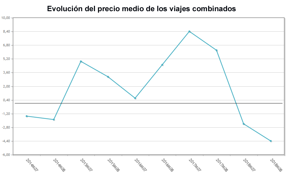 Para observar la última caída interanual es necesario remontarse a 2014. El precio de los viajes combinados bajó en dicho ejercicio un 1,9% (agosto) y un 1,5% (julio).